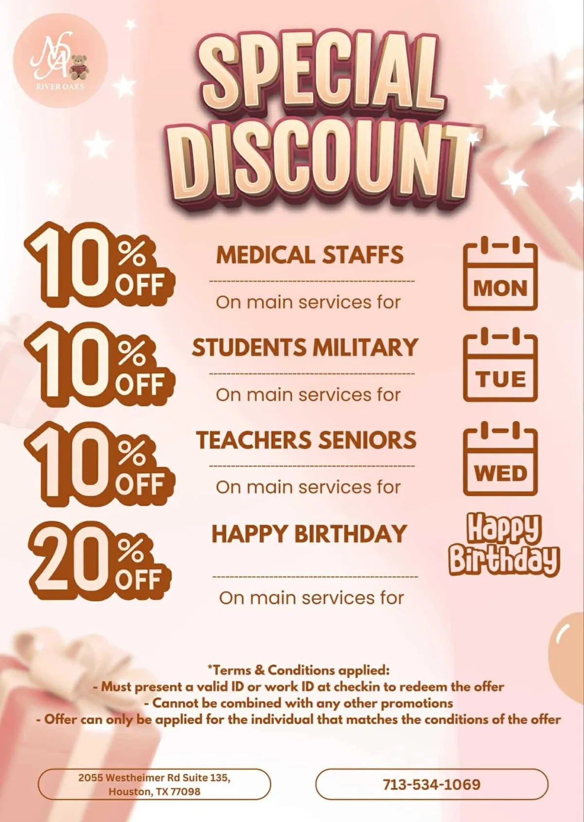 Must present a valid ID or work ID at check-in to redeem the offer.